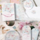 Ce design présente une magnifique illustration d'un charmant cheval de poney de conte de fées, une composition d'aquarelle élégante d'étoiles magiques et ballons roses pastel. Utilisez le champ modèle pour ajouter le nom de votre enfant.