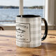 Un beau thème rustique, tasse à café à deux tons avec votre nom de famille personnalisé, maison de lac, cabine de pêche ou autre texte souhaité et il est date établie. Ce design personnalisé présente une typographie de style rustique avec des oeuvres d'art d'un poisson et d'aviron et encadré dans un imprimé de style plaid blanc avec des nuances de gris doux. N'hésitez pas à visiter mon magasin de créateurs pour voir plus d'objets et de modèles comme celui-ci. Merci .