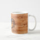 An earthy fall personalized family name coquette pumpkin mug design on rustic wood with a cozy and warm theme for autumn. Perfect for Thanksgiving, celebrating autumn, and the cozy vibe we need when the weather turns brisk! Time for pumpkin lattes and hot chocolate. Burt orange wood, foliage, and pumpkin with bow.