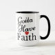 Célébrez votre foi dans le style avec cette tasse élégante qui dit 'Gotta Avoir Foi' en noir, blanc et rouge. Utilisez comme un encouragement quotidien le matin ou donnez comme un cadeau pour encourager quelqu'un d'autre.