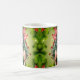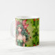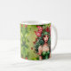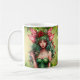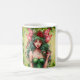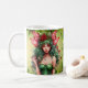 Cette belle tasse est ornée d'une paire de fées de Noël éblouissantes. Ils ont des cheveux verts magiques ornés de poinsettias et de baies rouges sèches. Ils ont également des ailes de papillons rouges et portent des petits butiers verts souillés.