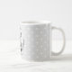 Célébrez la saison des fêtes magiques et festives avec nos tasses de fêtes personnalisées. Notre design festif de vacances comprend notre belle illustration de gravure de raton-laveur de fête dessinée à la main avec couronne de laurier et design de crête monographique de famille. Design moderne blanc et gris avec un motif à pois moderne et personnalisé avec monogramme familial. Toutes les illustrations contenues dans cette tasse de vacances de famille monogramme de vacances de fête raton sont dessinées à la main par Moodthology. Vous pouvez customiser la taille du texte, la couleur du texte, la police et la mise en page de votre propre préférence de conception personnelle.