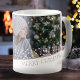 Festive Photo de famille Stars de Noël Keepsaké café Mug. Photo de Noël tasse que vous pouvez personnaliser avec votre photo, texte et le numéro d'année. Il a de jolies petites étoiles blanches. Changez la photo avec la photo de votre famille ou de votre enfant. Grand mug de conservation de vacances ou un cadeau unique pour votre famille, grands-parents et amis proches.