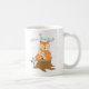 Dessin sucré d'une mère et de bébés renards sur une souche d'arbre avec des fleurs et des papillons roses.