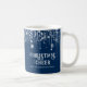 Les lampes à cordes bleu et blanc de la marine scintillent les tasses de Noël avec un design mignon et ludique avec nom de famille pour une saison de Fêtes festives.