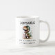 Mignonne tasse drôle idéale pour la Fête des pères, Anniversaire, Noël ou juste parce qu'il met en scène un dinosaure cool d'aquarelle. Au-dessus de l'illustration se trouve le mot maquillé "DADDYSAURUS" dans une simple police noire. En dessous de l'illustration, dans une simple police d'écriture manuscrite dit "Comme un père normal, juste plus génial".