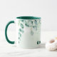 Un arrière - plan vert et blanc couleur eau. Décoré de feuillage de verdure d'eucalyptus et de fougère de bois. Personnalisez et ajoutez un nom.