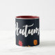 Falling Autumn Leaves Red Orange Yellow Mug - Ce produit se targue d'un beau motif de feuilles d'automne colorées entourant le mot Autumn - une belle façon d'accueillir l'automne.
