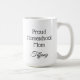 "Proud Homeschool Mom" est écrit en belle police noire. Le nom de maman est écrit sous la forme de lettres cursives. Personnalisez votre tasse de café dès aujourd'hui !