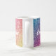 Ajoutez un brin de couleur à votre tasse avec parties scintillant arc-en-ciel avec police rétro. Personnalisez avec votre nom, monogramme, initial ou texte. Vous pouvez modifier la couleur du texte et le style de police à l'aide de l'option customiser. Les parties scintillantes sont simulées par le design. Il n'y aura pas de parties scintillantes sur ce produit.