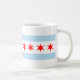 Mug with flag of city of Chicago, Illinois, white and light blue striped flag with 4 stars red