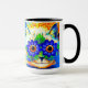 Mug à café avec la peinture animale de Louis Wain Cat Flower Eyes (1860-1939). Un chat arc-en-ciel grince largement. Des fleurs bleues recouvrent ses yeux. Un cadeau merveilleux pour l'art amoureux des chats et anglais.