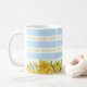La Fleur du mois et la Pierre de naissance pour mars sur une tasse rayée. La paire de fleurs et de pierres précieuses pour mars est la jonquille et l'Aquamarine. La tasse a le sens de la fleur du mois et de la pierre de naissance. Ajoutez un monogramme facultatif - ou supprimez complètement ce détail. Les fleurs illustrées à la main sont associées à de larges bandes pour faire un joli cadeau féminin. Le thème Fleur et Gemme de naissance a une touche personnelle et est un cadeau préféré pour les femmes et les filles : mère, fille, petite fille, soeur, god-fille, cousin, nièce, tante, demoiselle d'honneur, fille de fleurs, bonne d'honneur, amie, petite amie, femme, belle-fille, belle-mère, belle-mère, belle-fille et mariée ! Convient pour les anniversaires ou les cadeaux de tous les jours, parce que les amateurs de Flower-of-the-Month et de Pierres d'anniversaire aiment recueillir des objets avec leur fleur spéciale et la gemme à tout moment de l'année. Fleur de naissance et cadeaux de Gem sont également très bons pour Félicitations, Encouragement, Amitié, Obtenez bien, Bonne chance, Petits cadeaux d'appréciation, Garder le contact, Désolé, Merci et Penser de vous. Parfait pour les vendeurs de fleurs, les pépinières et les fleuristes. Découvrez tous les produits Anni Arts Birth Flower et Gem Zazzle - une collection en pleine croissance!