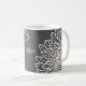 Grandes fleurs blanches sur dentelle arrière - plan gris foncé. Cette tasse à la mode et moderne personnalisable fait un merveilleux cadeau personnalisé. Customisez l'initiale et le nom pour le rendre vraiment unique. Conception de Farmhouse Living.