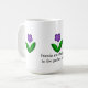 Un joli design avec de jolies fleurs de jardin pourpres debout accentue cette tasse de café. Un doux message "les amis sont les fleurs dans le jardin de la vie" Le message peut être changé si vous le souhaitez.