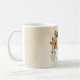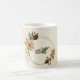 Tasse à café unique avec des fleurs de terre cuite romantiques rustiques et des feuilles vertes.
