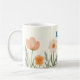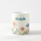 De jolies fleurs pastel roses et bleues sur un arrière - plan crème créent une belle tasse que vous aimerez. Personnalisez avec votre nom en bleu. Très mignon !