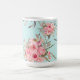 De magnifiques fleurs d'aquarelle rose pâle fleurissent contre un arrière - plan bleu clair.