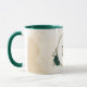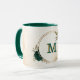 Magnifique tasse à café avec des fleurs vert émeraude et or beige et des feuilles vertes .