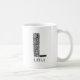 Cette moderne lettre florale L en noir et blanc peut être entièrement personnalisée avec votre nom sur les deux côtés de la tasse.