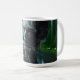 Artistic mug featuring a grayscale female portrait surrounded by lush forest tones and natural light, symbolizing peace, creativity, and renewal.