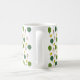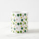 Cette tasse a un design scandinave à répétition d'une forêt dans les tons marron et vert et jaune étoiles.