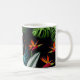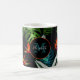 Un arrière - plan noir chic. Forêt tropicale verte et bleue, jungle. Palmier et feuilles de banane, feuillage aux fleurs rouges et oranges, fleurs. Un cadre noir et orange avec espace pour votre nom et lettre monogramme. Le nom est écrit avec un script de style moderne écrit à la main.