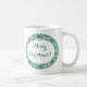 Un café de Noël chic Mug à customiser avec une couronne de Noël de saints, lierre, poinsettias, cônes de sapin et des branches de sapin. Cette couronne de Noël dessinée à la main est en vert de forêt sur un arrière - plan blanc que vous pouvez changer si vous le souhaitez, avec "Joyeux Noël" également en vert, que vous pouvez également changer.