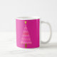 Mug dans un moderne simplifié prendre sur un motif classique arbre de Noël, fuchsia et rose orchidée, satin texturé ombre sur un arrière - plan fuchsia profond