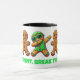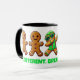 Faites remarquer au bureau de Noël avec cette tasse festive et amusante, qui présente une rangée d'hommes en pain d'épices identiques. La série de la similitude est brisée par l'homme en pain d'épices du milieu, qui porte un costume vert sucré et des lunettes de soleil cool pendant qu'il tremble avec enthousiasme. Brisez le moule à découpe de biscuits. Soumettre un caao à la conformité. Osez être différent ! Design © W.H. Sim. Voir plus sur zazzle.com/word2art