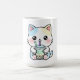 An adorable cartoon cat enjoying a tasty drink! This cheerful and cute design adds a fun vibe to mugs, stickers, and other gift items. Perfect for anyone who loves cats and cute art.