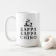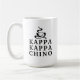 Une tasse de latte amusante qui transporte un amour du cappuccino avec son spin "Kappa Kappa Chino" sur la vie de campus grec et les cafés! Doté d'un graphique de tasse de café vapeur et de lettres collégiales noires audacieuses sur une tasse blanche, ce design est parfait pour les amateurs de café en sororité, fraternités, cafés-bars, ou toute personne qui aime le café ou les puns de la vie grecque. Il fait un grand supplément à votre collection de tasses!
