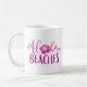 Cette tasse à café amusante présente l'image textuelle "Plages Aloha" en parties scintillant sombre rose et personnalisée avec votre nom le long du côté, ou supprimer le nom pour un look propre.