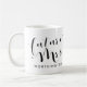 Cette tasse contient l'expression "future Mme". dans une typographie de script noire et moderne. Ajoutez votre nom de famille à être, ou supprimez entièrement le champ. Il a été conçu comme une tasse à main droite, mais la conception peut facilement être déplacée à l'autre côté de la tasse en la transformant en tasse à main gauche simplement et facilement en utilisant la personnaliser de l'outil.