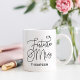 Moderne et chic, un mug mariage personnalisé avec calligraphie noire "Future Mme" pour les femmes, avec un texte personnalisable avec le nom de famille de la mariée. Cadeau idéal pour la future mariée !