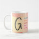 Cette tasse sera un favori pour tout le monde, de votre petite-mère douce à votre soeur adolescente. Avec le bon message, un mug peut devenir le compagnon précieux de n’importe qui pour les années à venir. Ce design présente une belle lettre dessinée à la main "G" en noir cursif sur un arrière - plan d'aquarelle étonnant. Le côté gauche présente un dégradé chaud de jaune à rose, tandis que le côté droit affiche un dégradé doux de rose à jaune. Autour de la lettre sont des mots vibrants de différentes couleurs, dont le bleu, l'orange, le rouge, le violet et le rose, mettant en évidence des traits positifs commençant par la lettre "G". L'effet global est un design visuellement attrayant et stimulant qui célèbre la beauté de la lettre "G" et ses qualités associées. L'arrière - plan aquarelle ajoute une touche d'élégance et de sophistication, ce qui rend ce design parfait pour des raisons d'inspiration ou de motivation.