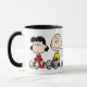 Regardez Lucy, Charlie Brown, Snoopy, Sally, et Linus assis ensemble dans une rangée.