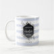 Cette tasse branchée et inspirante pour le voyageur présente un cadre géométrique à l'apparence d'or faux rose, avec un script manuscrit blanc moderne qui dit la citation "et ainsi l'aventure commence." Le design apparaît sur un arrière - plan à rayures bleues douces, avec des feuilles verts à l'aquarelle dessinés à la main entourant le cadre, ce qui en fait le parfait pour tous les amateurs de voyage aventureux !