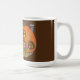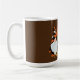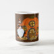 La tasse à thème d'automne Whimsical présente une illustration de maison citrouille d'aquarelle avec un adorable gnome en tenue d'impression harlequin sur arrière - plan brun moyen. Texte personnalisable en police blanche de style manuscrit moderne