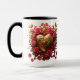 Un design d'inspiration valentine qui respire l'amour et l'élégance, avec un coeur métallique doré lustré embrassé par des roses roses vives. Le contraste saisissant entre le coeur doré et les fleurs roses douces reflète l'essence de la passion, de la beauté et de l'affection. Ce design évoque le sentiment romantique parfait, idéal pour célébrer l'amour le jour de la Saint-Valentin ou toute occasion qui demande une touche de luxe sincère. "Image originale générée par Meta AI. L'IA a généré des oeuvres d'art. Licence CC BY-SA 4.0."