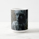 Artistic mug featuring a grayscale female portrait framed by a golden geometric grid pattern, symbolizing elegance, balance, and creative energy