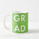 Tasse à café moderne graduation avec "Grad" en lettres blanches en gras avec un arrière - plan vert citron ou couleur de votre choix. Personnalisez la tasse de graduation en ajoutant le nom et l'année de graduation du diplômé. La tasse à café est un cadeau de remise de diplômes très personnalisé pour les diplômés du secondaire et du collège!