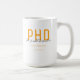 Une grande tasse de doctorat qui indique le nom du diplômé, le domaine d’études et la date de fin d’études. La tasse inclut le nom dans une police de script manuscrite et un design orange et noir. C’est un grand plaisir pour un gardien ou une fête. Ajoutez simplement les infos du diplômé, ajoutez cette tasse à votre panier, et félicitations pour cette étape majeure ! Graduate Keepsaké orange Noir Nom PhD Grand café Mug Conception de jour férié | ©Melissa Patton - Designer
