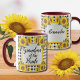Une belle grand-mère de la mariée (ou de la chambre) personnalisable Mug personnalisée avec un classique noir en vichy motif et tournesol. Cette tasse a des modèles modifiables. Vous pouvez le changer pour dire Grand-mère de la Groom ou Nana de la Mariée (ou Groom, par exemple) Cette tasse est un grand cadeau de faveur pour grand-mère à votre douche nuptiale, bachelorette, ou mariage. Un côté de la tasse dit la grand-mère de l'épouse (ou tout ce que vous entrez dans le modèle). L'autre côté fournit un modèle de script où vous pouvez entrer son nom. Découvrez notre collection Black En vichy & Sunflowers pour plus d'idées wedding showers et de réception dans le même thème !