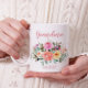 Grand-mère PERSONNALISABLE Date - Première Mug de café Grandma Ce design est dédié aux premières grand-mères ! Pour la première fois grand-mère ! Entièrement personnalisable. Choisissez l'en-tête et le pied de page pour rendre ce cadeau inoubliable. Beau design avec des fleurs aquarelles peintes.