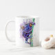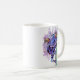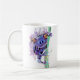 aquarelle traditionnelle et dessin à l'encre d'une grenouille de couleur violette escalade vers un arbre tout en regardant le spectateur sur une tasse à café