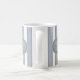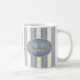 Cette tasse personnalisée a un monogramme d'ivoire dans un cadre ovale sur un arrière - plan de larges bandes en gris ardoise et blanc antique qui peut être personnalisé pour afficher votre nom, nom de famille, ou promouvoir votre entreprise.