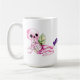 El diseño de la taza temática de Halloween presenta dos calaveras bebés adorables con detalles simpáticos que resaltan su ternura, rodeadas de elementos festivos de la temporada. Encima de las calaveras, la palabra "Halloween" aparece en una fuente curvada, dándole un toque dinámico y divertido. Los colores juegan con contrastes oscuros y vivos, como el negro, blanco y toques de naranja, creando una atmósfera perfecta para celebrar la festividad de manera lúdica y encantadora.