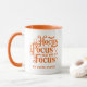 "Hocus pocus, j'ai besoin de vin pour me concentrer (ou café fort)" en disant imprimé en orange sur les deux côtés d'une tasse de café, amusant pour Halloween pour les femmes ou les hommes.