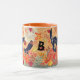Des motifs d'Halloween dans les tons chauds orange, jaune et rouge sont accentués par des chats noirs traditionnels sur cette tasse. Mon aquarelle originale d'un patch citrouille, feuilles d'automne tourbillonnantes, une lune d'automne conviviale et des étoiles sont montrées sur un arrière - plan orange clair couleur bonbon. Il y a même de minuscules souris grises qui jouent en feuille ! Customisez avec un monogramme off-kilter initial en noir - il est facile d'utiliser l'invite Personnaliser et le modèle sur la page du produit. Un accent ou un cadeau amusant pour la maison ou le bureau. OEuvre d'art et de design original, unique et fantastique de Tuzi Williams.